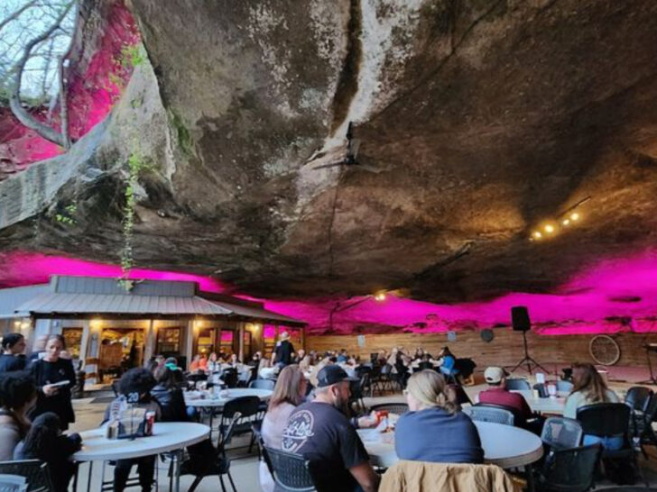 - This Alabama Restaurant Is Built Inside a Real Cave Under a Hanging Rockby Abigail CoxTucked beneath a dramatic rock overhang, Rattlesnake Saloon serves up a dining experience you won’t forget anytime soon. The adventure begins with a unique ride down in the back of a pickup, setting the tone …