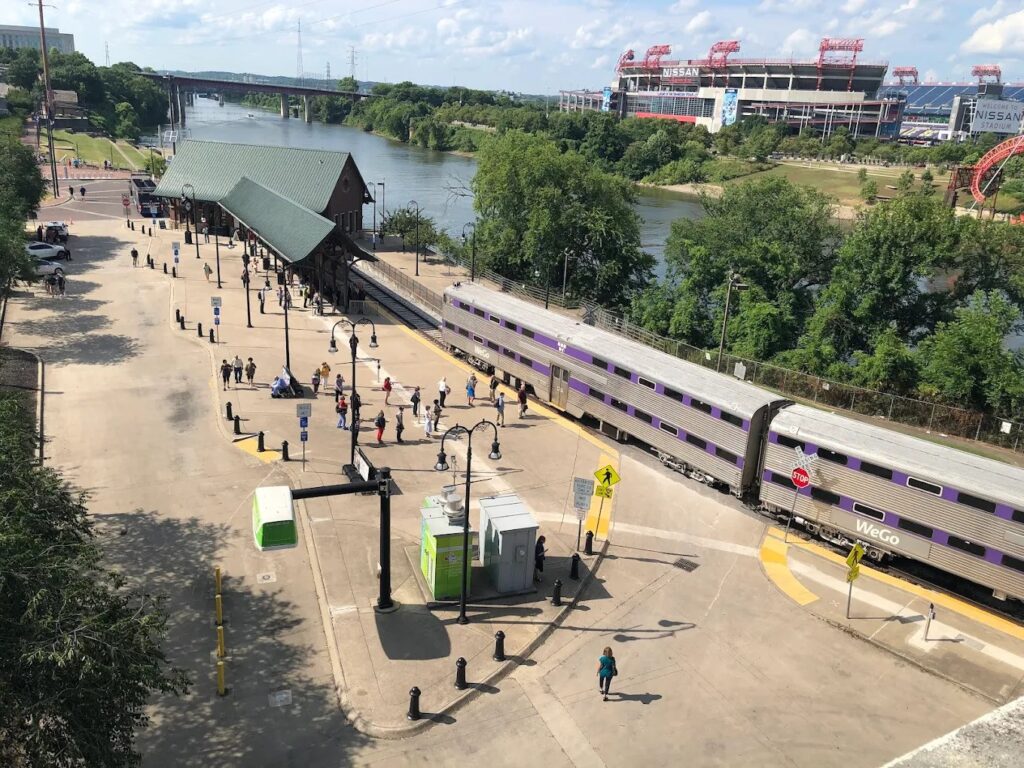 Your journey begins at Riverfront Station in downtown Nashville. Located near Broadway and Nissan Stadium, this station places you within walking distance of some of the city’s most popular attractions. You can grab coffee, stroll along the Cumberland River, or explore Lower Broadway before boarding.